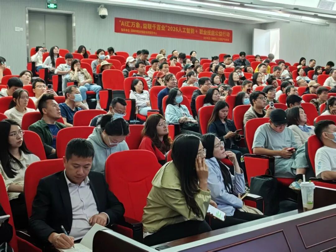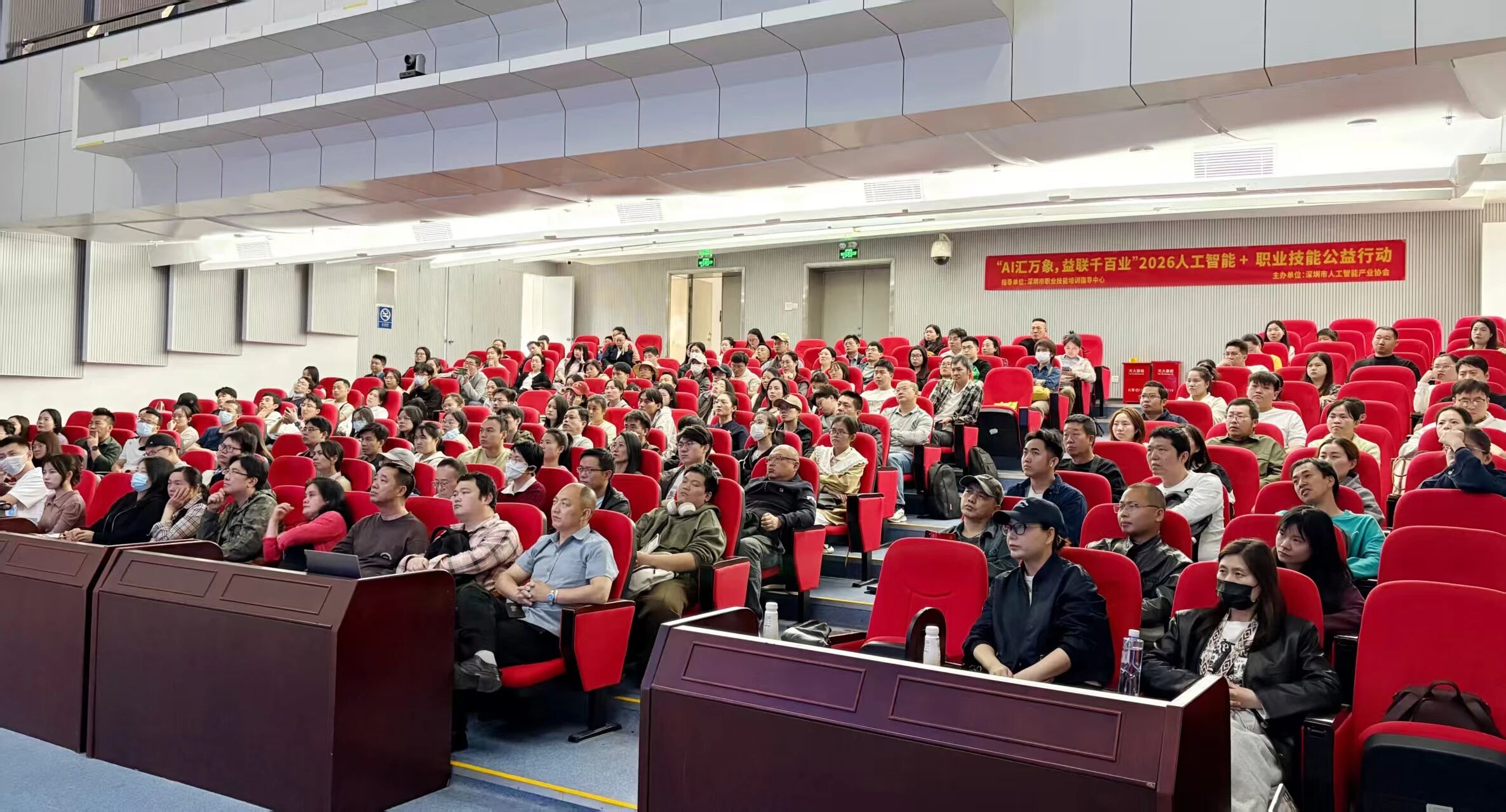 为深入贯彻落实“技能照亮前程”培训行动部署,进一步拓宽技能人才职业发展通道,助力劳动者以技立身、以技成才。2026年3月14日,由深圳市职业技能培训指导中心指导、深圳市人工智能产业协会主办的抢占AI短剧风口·线下公开课在福田区高训大厦圆满落幕。本次活动在报名初期就吸引了1200余人加入预报名咨询群,足见市场对AI短剧赛道的高涨热情与深切期待。在课程当天,线下逾190名学员到场参与,同时线上直播观看人数突破近1400人次,线上线下反响热烈,充分展现了AI内容创作领域的蓬勃生机。