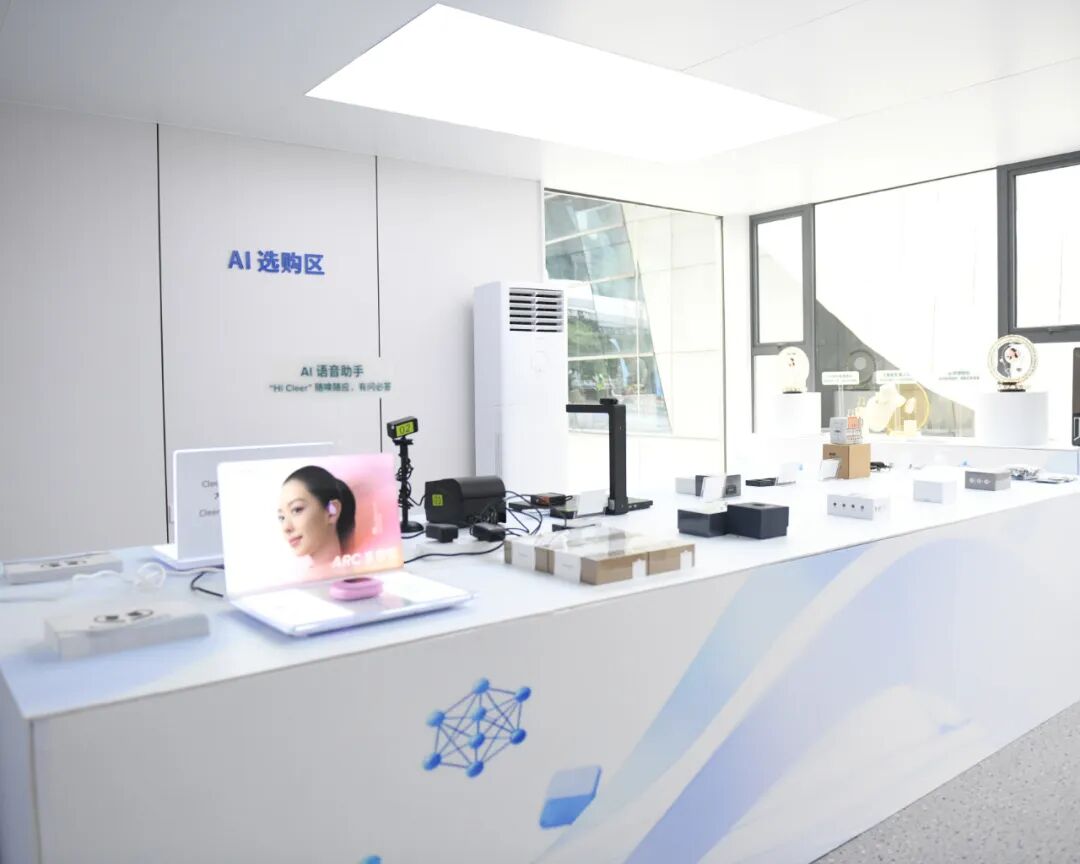 据介绍,作为龙岗“All in AI”战略的关键落子,人工智能6S店创新性整合展示(Show)、销售(Sale)、培训(School)、社群(Social)、解决方案(Solution)、孵化(Startup)等服务功能,构建“前店后厂”运营模式。前端展示区汇集Plaud Note X1、Rokid AI+AR眼镜等全球爆款及昊洋智能会议终端、小智AI语音对话盒子等国产创新产品,通过场景化体验捕捉市场需求;后端依托龙岗智能制造基础,实现从概念到产品的快速转化,将传统数月的研发周期缩短至几周。