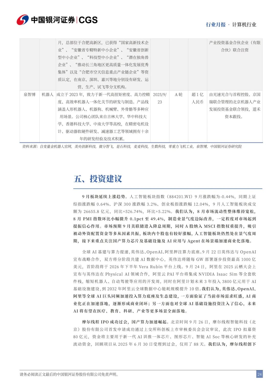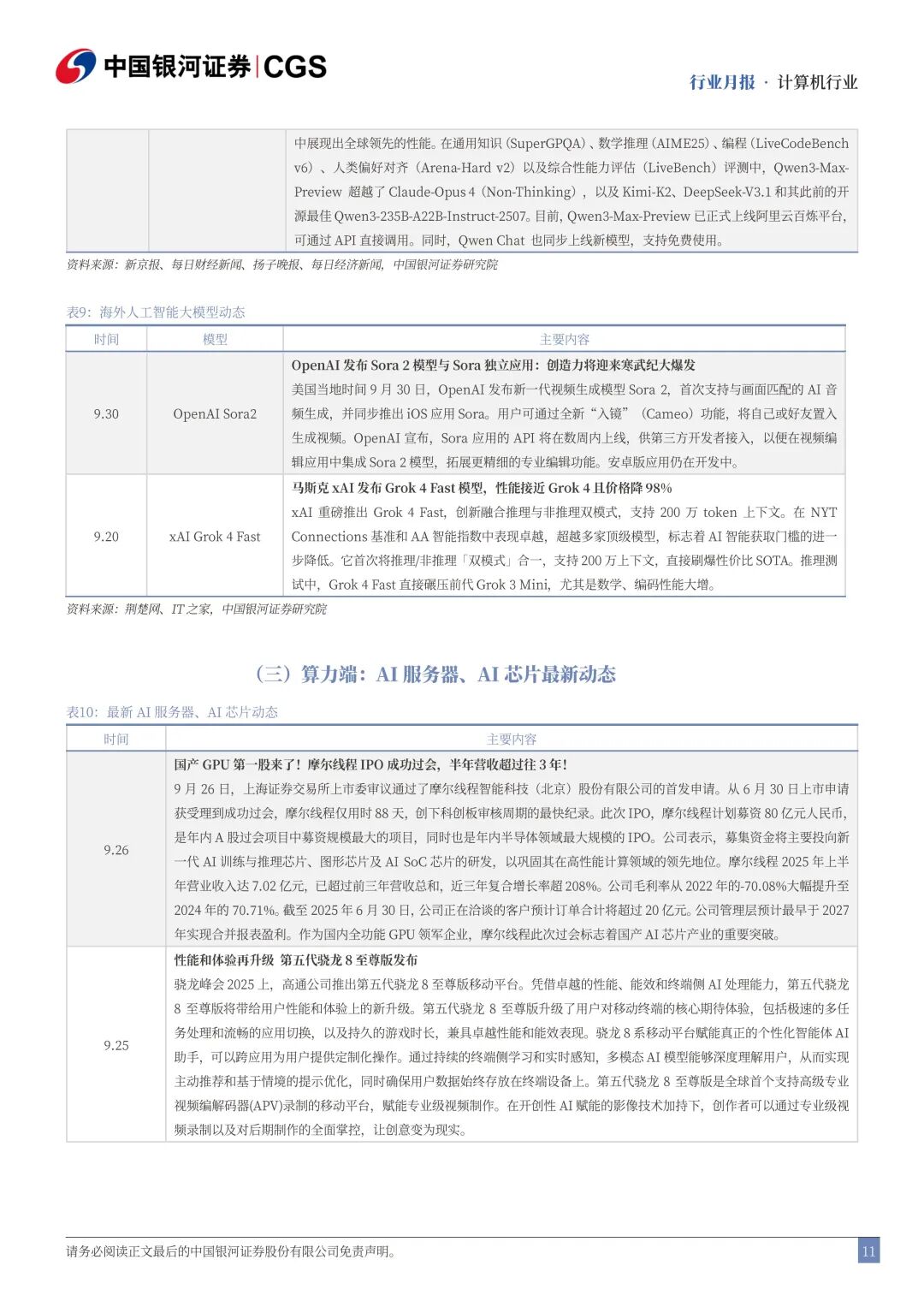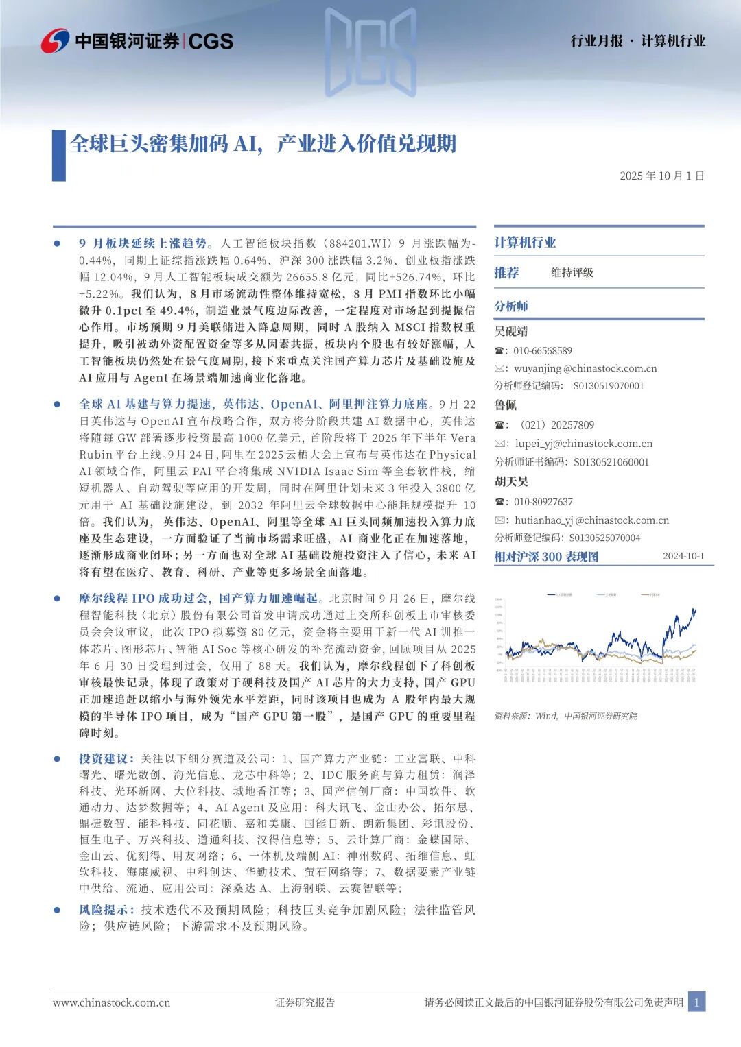 【产业资讯】银河计算机 | 行业月报:9月人工智能月报——全球巨头密集加码AI,产业进入价值兑现期