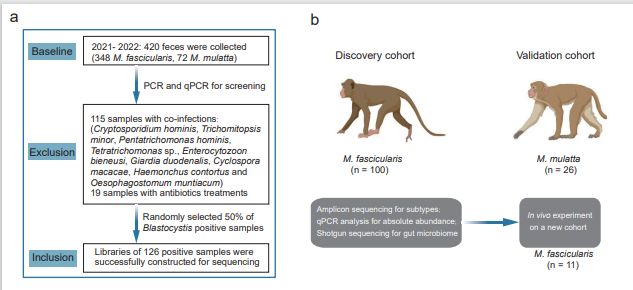 为确保结论可靠,研究设置 “发现 - 验证 - 干预” 三层队列:发现队列(食蟹猴 100 只)+ 验证队列(恒河猴 26 只)+ 干预队列(食蟹猴 11 只),严格排除其他肠道寄生虫及干扰因素。