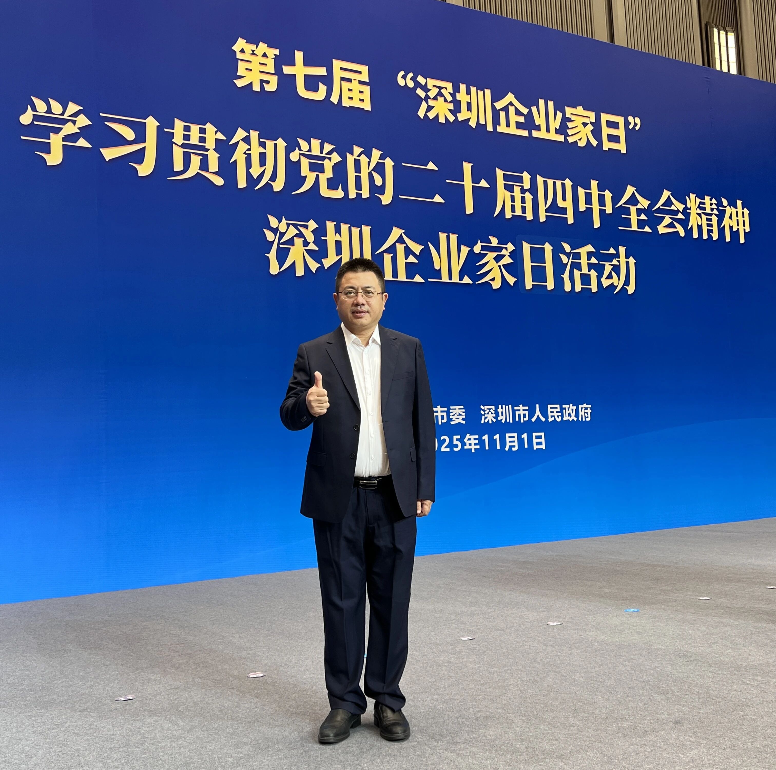 11月1日,第七届“深圳企业家日”学习贯彻党的二十届四中全会精神深圳企业家日活动在前海国际会议中心举行。作为深圳以立法形式设立的全国首个 “企业家日”,此次盛会不仅是城市对企业家群体的最高致敬,更是政企协同推进高质量发展的重要平台。全国工商联人工智能委员会常务秘书长、深圳市人工智能产业协会执行会长范丛明受邀参加,会议由深圳市委常委、统战部部长王强主持,深圳市委副书记、市长覃伟中出席并讲话,市四套班子领导与各界企业家代表齐聚一堂,会议特邀权威专家深度解读党的二十届四中全会核心要义与民营经济促进法,为全市民营经济高质量发展指明了方向、凝聚了共识。