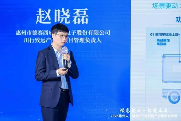 场景应用分享环节,惠州市德赛西威汽车电子股份有限公司的川行致远产品与项目管理负责人赵晓磊分享了下属品牌“川行致远”如何将其近40年积累的车规级研发制造能力与全栈自研算法,成功应用于解决城市“最后一公里”的低速无人车物流痛点。该解决方案已超越单纯的技术示范,进入了规模化部署阶段。它不仅成为深惠产业协同的落地样板,其成功经验也正辐射至全国更多城市,通过构建安全、耐久且经济的智慧移动解决方案,为提升城市物流网络的整体效率注入了创新动能。