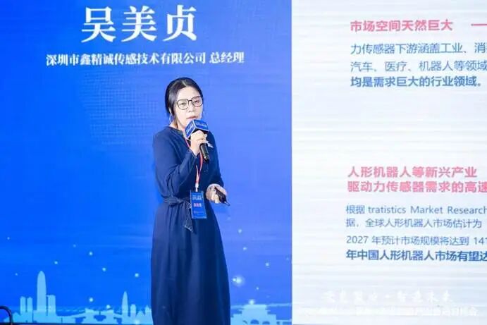 深圳市鑫精诚传感技术有限公司总经理吴美贞,介绍了公司凭借16年技术积累,在六维力传感器领域实现重大突破,其自主研发的MEMS原理六维力传感器不仅达到0.01N·m感知精度与4mm最小尺寸的行业领先水平,更建成国内首条自动化量产线。作为国内唯一掌握结构解耦融合算法技术的企业,该公司产品已通过国际先进水平认证,并牵头承担深圳市灵巧手六维力传感器重大科研专项。通过电阻应变式、压电式及MEMS三大技术路线,企业为机器人灵巧手、汽车自动化、医疗设备等十大领域提供精密力控解决方案,产品进入苹果、华为等全球头部企业供应链。2025年获得深创投近亿元A轮融资后,企业正加速布局人形机器人等新兴市场。