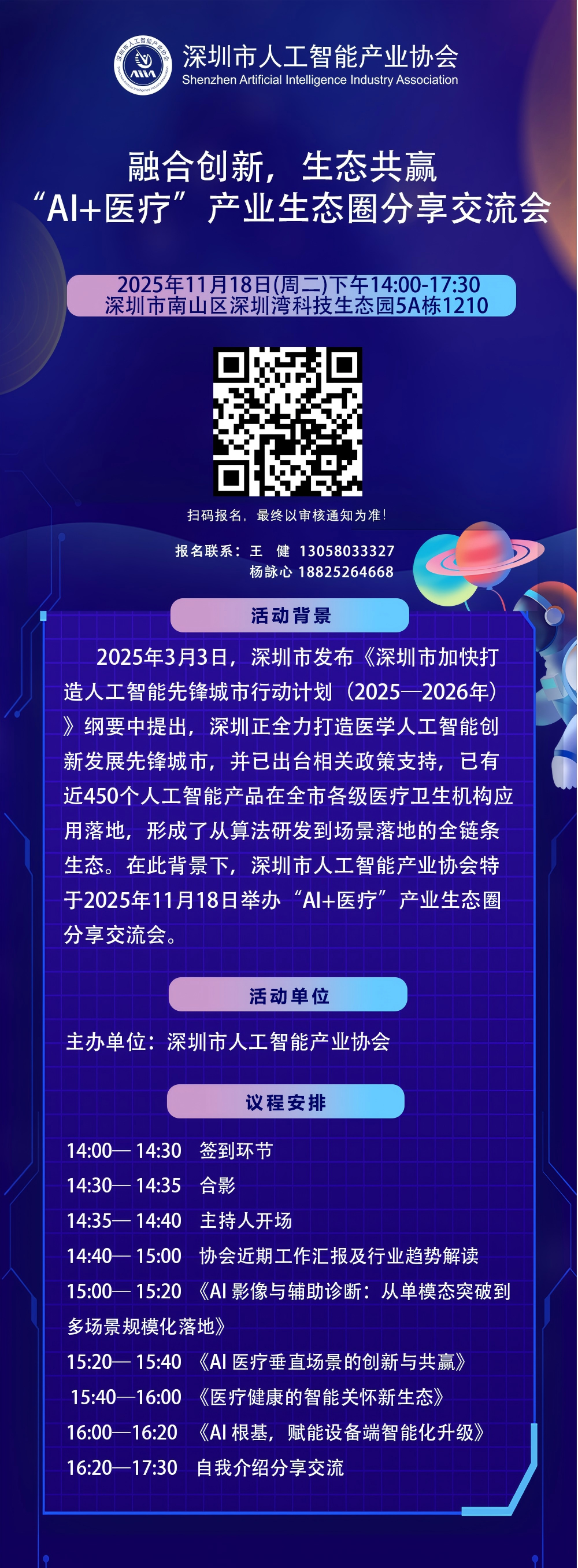 【活动预告】11月18日 | 融合创新 生态共赢,“AI+医疗”产业生态圈分享交流会