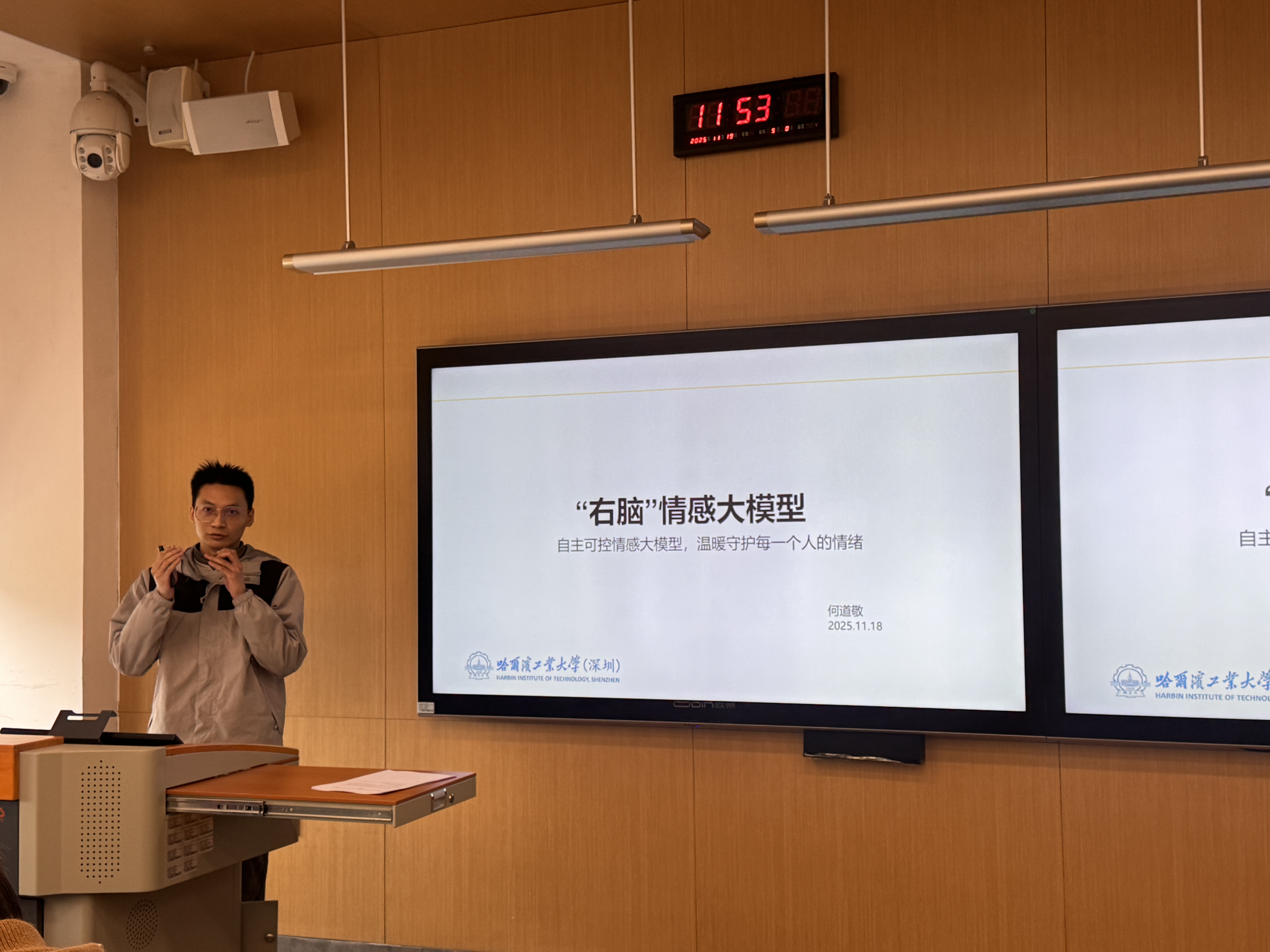 哈工大(深圳)计算机学院何道敬团队产品经理张海挺,以 “自主可控的 AI 情感大模型对各行业的赋能” 为题,分享了自主研发的 “右脑” 情感大模型的技术创新与行业应用成果。模型采用端到端加密传输、本地化部署、数据脱敏处理等安全机制,确保用户隐私绝对安全,其构建的专属数据集涵盖不同年龄、不同群体特征,能精准匹配多样化情感需求,展现了AI技术温暖赋能民生的广阔前景。
