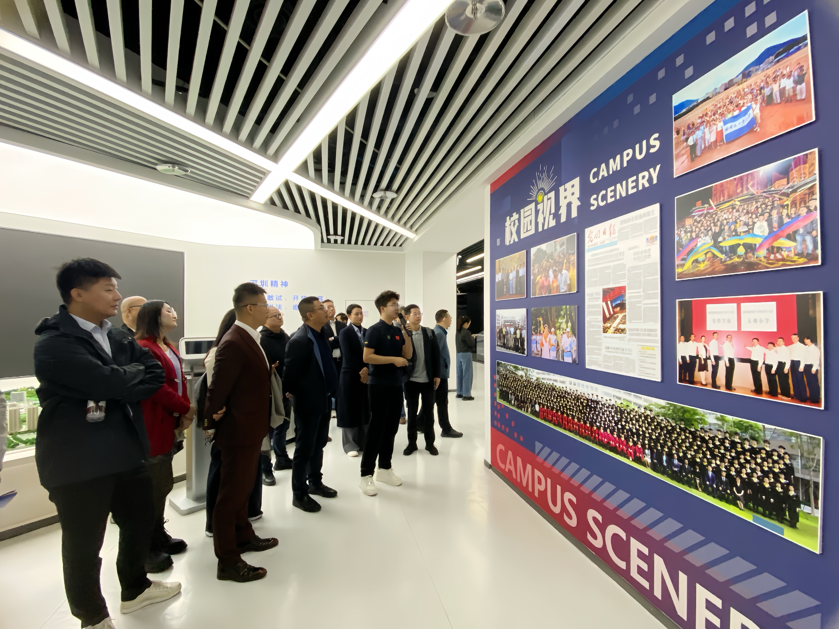 活动伊始,与会企业参观哈尔滨工业大学(深圳)校史馆。在参观过程中,嘉宾们了解学校发展历程、学科建设、师资队伍、科研成果及国际合作等核心展区,通过详实的史料、鲜活的案例,全方位深入体悟这所“英雄校园”积淀的办学底蕴与精神传承。作为展现学校发展脉络与办学特色的重要窗口,哈工大(深圳)校史馆依托学校工科优势,将现代科技与严谨特质深度融合。馆内精心设置了校区建设沙盘演示、“博物馆漫游”查询屏、创新成果OLED透明查询橱窗等13个互动展项,企业在趣味互动中直观感受学校的科研创新实力,也切实体会到大湾区开放创新的现代科技氛围。