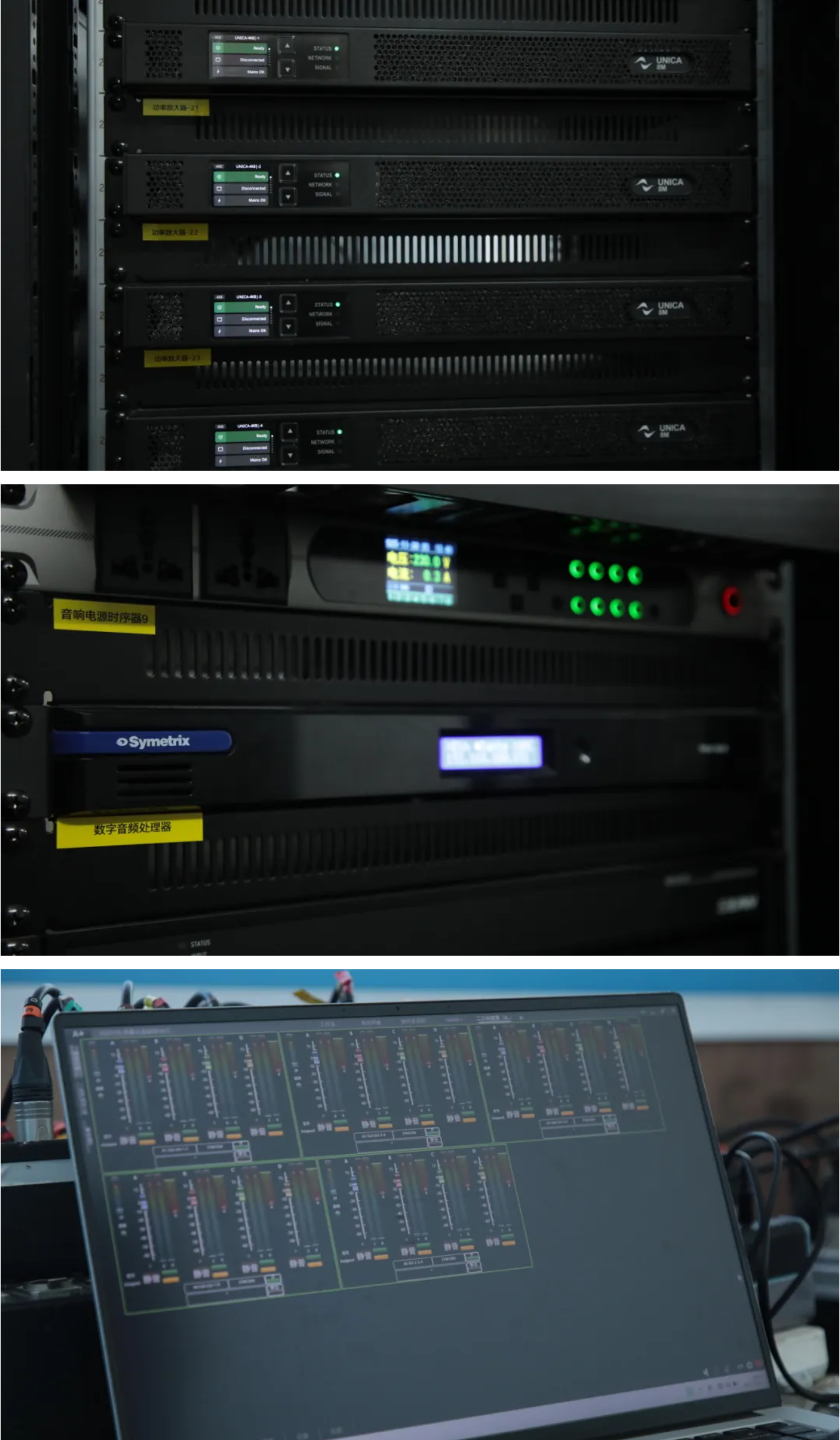 同时,还使用了Powersoft Unica系列和 ezacoustics ETM系列数字功率放大器,这些功放均拥有强大的DSP功能,且可通过ArmoníaPlus软件实时监控功放及扬声器的状态。此外,系统搭载的Symetrix Prism系列数字信号处理器也对音频信号进行了更为精准的处理与优化。