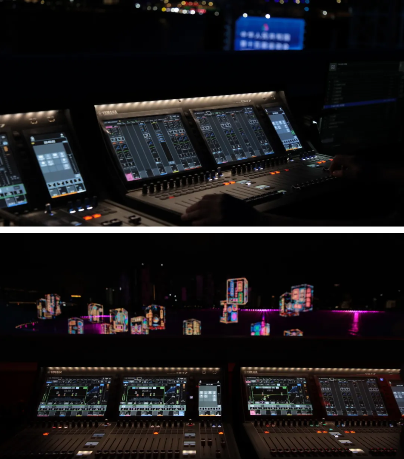 这份稳定与清晰,源于“硬核”的硬件支撑与架构设计。调音台作为系统的中枢核心,易科团队采用两台雅马哈DM7调音台搭配Rio 3224-D3和Rio 1608-D3接口箱,构建了主备系统,主链路采用Dante传输,备份链路采用模拟信号传输,即使发生故障,主备系统也能实现无缝切换,保证声音不中断。