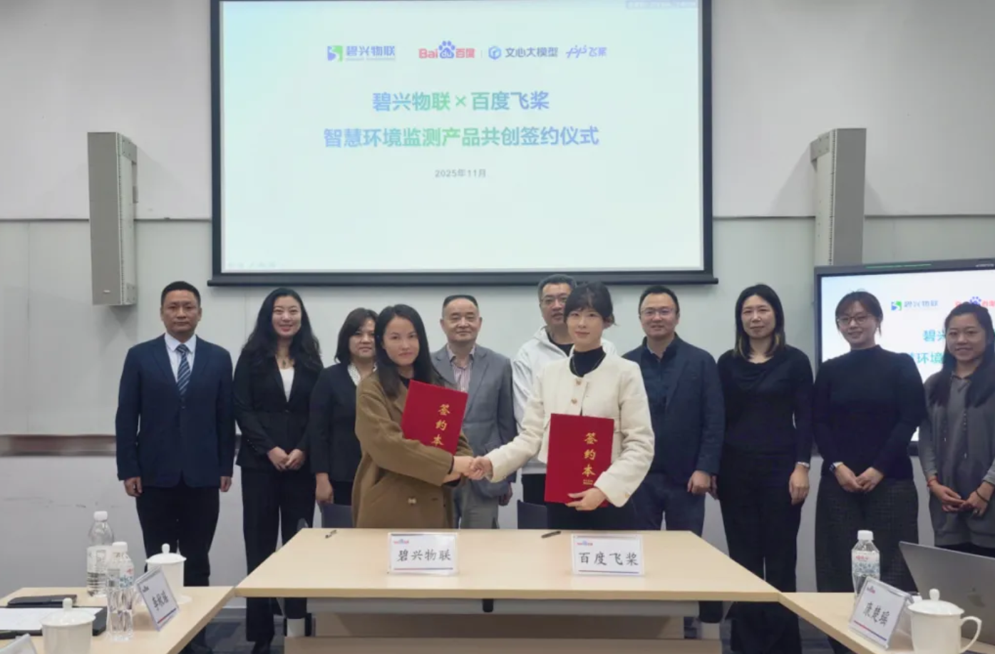 2025年11月24日,碧兴物联科技(深圳)股份有限公司与北京百度网讯科技有限公司在北京正式签署产品共创合作协议。协会荣誉主席碧兴物联董事长何愿平、联席总裁吴蕙,百度基础技术体系产品委员会主席兼百度AI技术生态副总经理周奇、百度AI技术生态华南区域运营负责人曾旭东等双方代表共同出席了签约仪式。