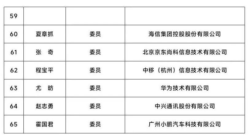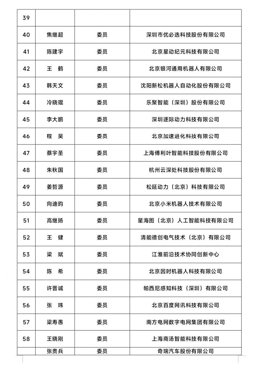 人形机器人标准化技术委员会委员名单