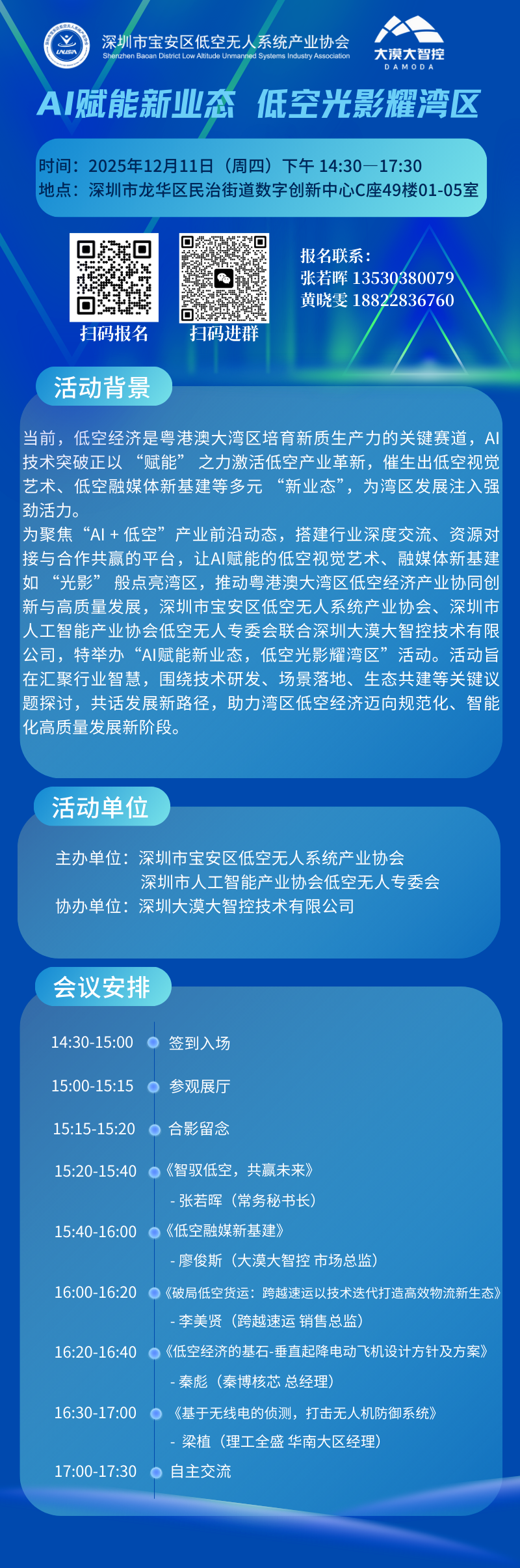 【活动预告】火热报名中!AI赋能新业态 低空光影耀湾区