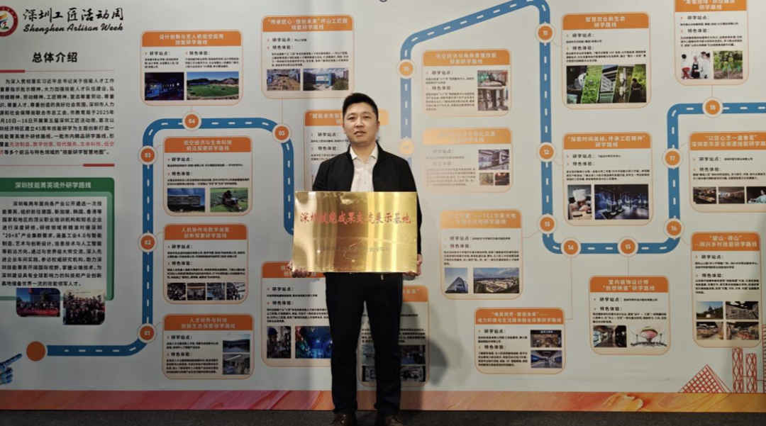 活动中,深圳市人工智能产业协会凭借在技能人才培养与成果转化方面的扎实工作和突出贡献,被深圳市人力资源和社会保障局授予“深圳市技能成果交流展示基地”称号,成为全市首批10家入选单位之一。协会副会长黄俊杰代表协会接受授牌,该荣誉既是深圳市对协会长期以来在技能人才培养领域工作的充分肯定,也标志着协会在推进高技能人才队伍建设中迈入了更高水平的发展阶段。