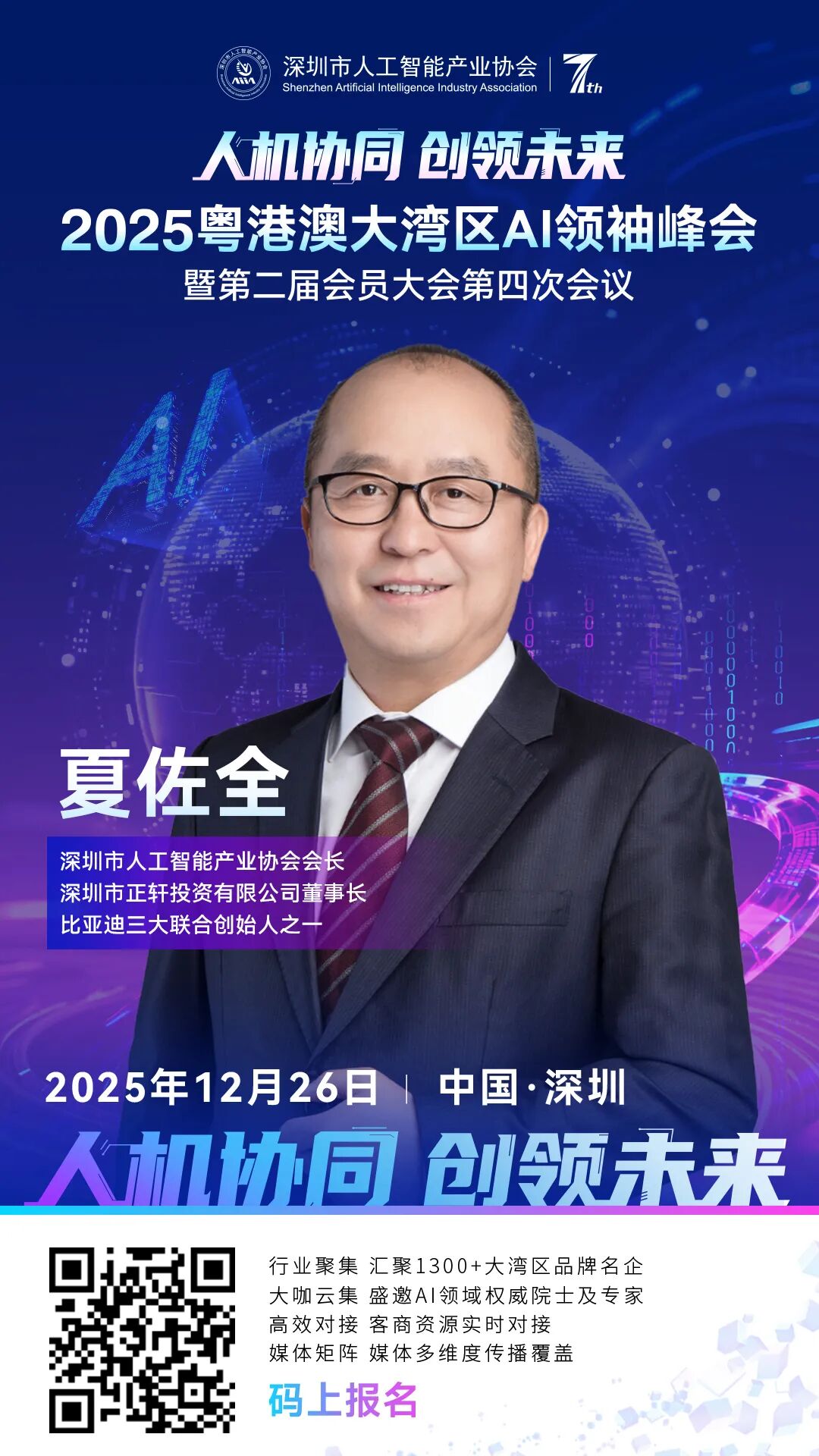 【年会预告】 “人机协同·创领未来” 2025粤港澳大湾区AI领袖峰会—大咖云集,共襄盛典!