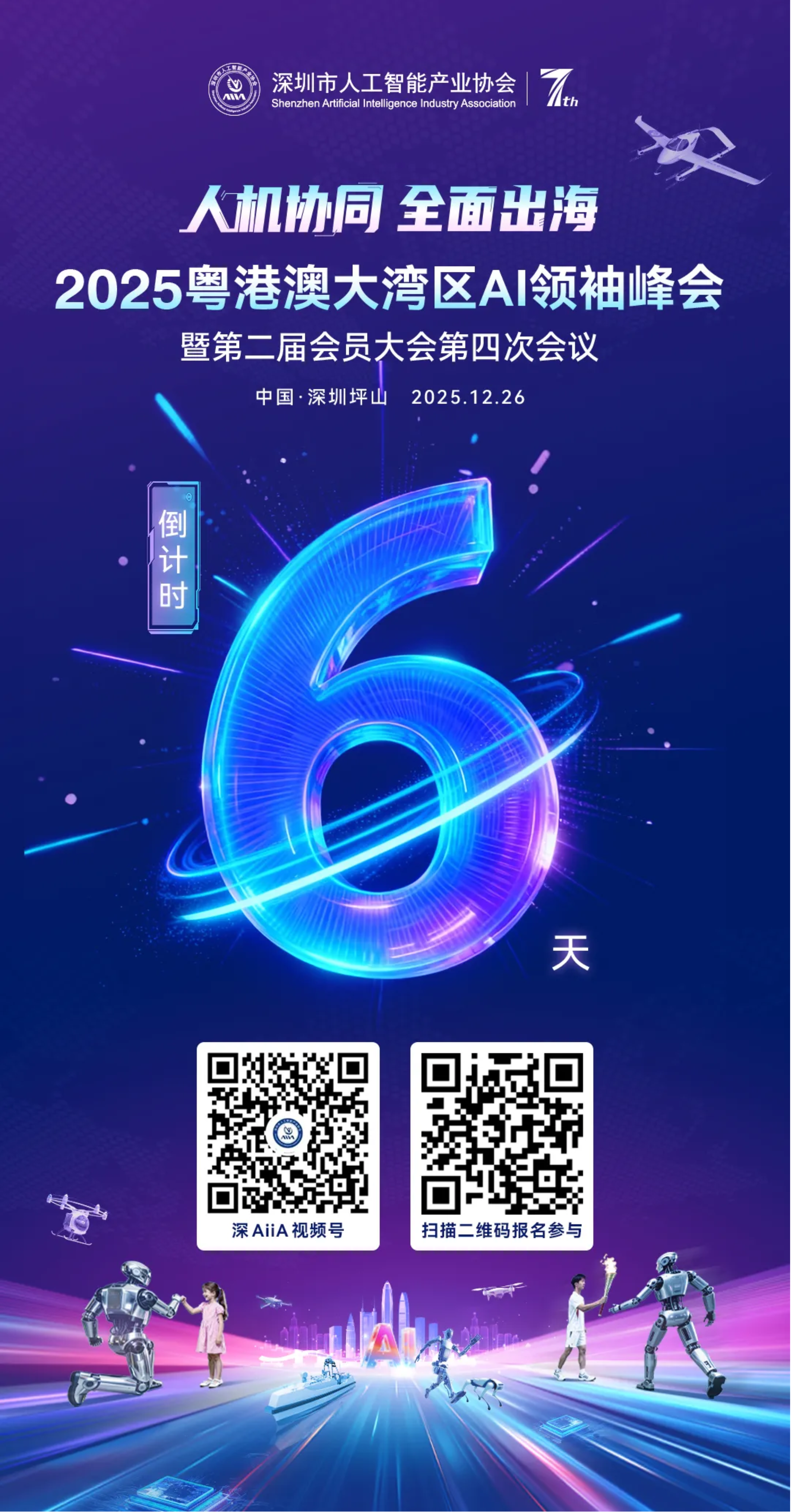 【年会倒计时6天】12月26日 | “人机协同·创领未来”2025粤港澳大湾区AI领袖峰会暨第二届会员大会第四次会议