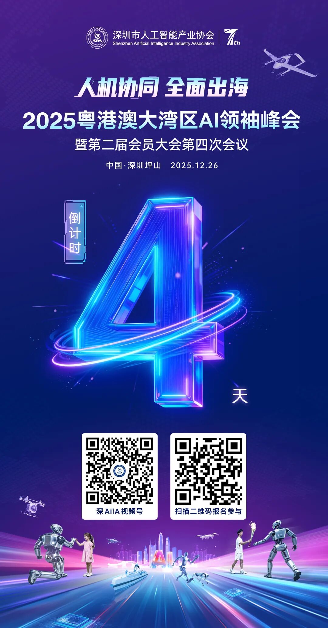 【年会倒计时4天】12月26日 | “人机协同·全面出海”2025粤港澳大湾区AI领袖峰会暨第二届会员大会第四次会议