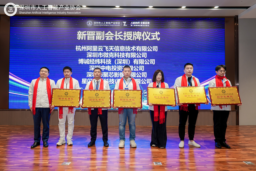 在新晋副会长、理事授牌仪式上,监事长徐明为微克科技、博诚经纬科技、中电投资、聚芯影像、星闪海辰等新晋副会长单位,以及天成盈泰、诺邦泰新材料、意华股份、浙江大沩人工智能等理事单位授牌。聚芯影像总经理吕永辉作为新晋理事代表发言,表示将积极参与协会建设,共创发展新机遇。