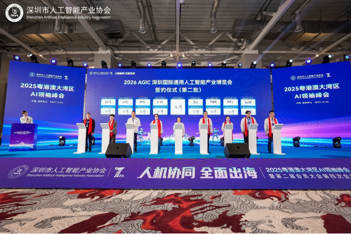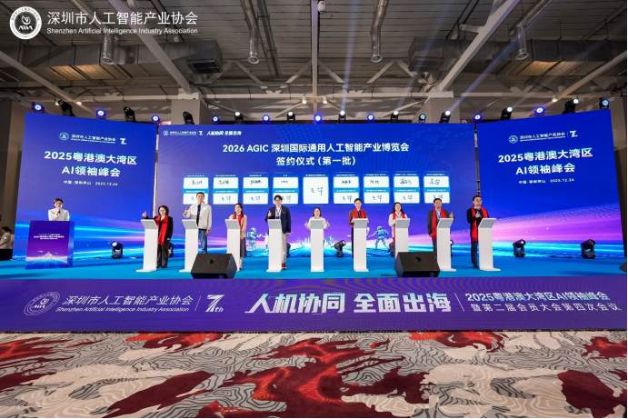 2025年12月26日,由深圳市人工智能产业协会主办的“人机协同·全面出海”2025粤港澳大湾区AI领袖峰会在深圳坪山燕子湖国际会展中心隆重举行。当前,AI产业出海已迈入“生态协同出海”新阶段,人机协同技术的持续突破为产业升级注入强劲动能。当天,一众业内精英齐聚创新之城深圳,共赴以“人机协同·全面出海”为主题的产业盛会。本次大会聚焦AI赋能实体经济的落地路径,深度破解企业出海过程中的合规适配、生态融合、本地化运营等关键难题,助力大湾区AI企业借政策东风、凭产业集群优势稳步迈向全球市场,共同书写粤港澳大湾区人工智能产业赋能实体经济、链接全球发展的崭新篇章。