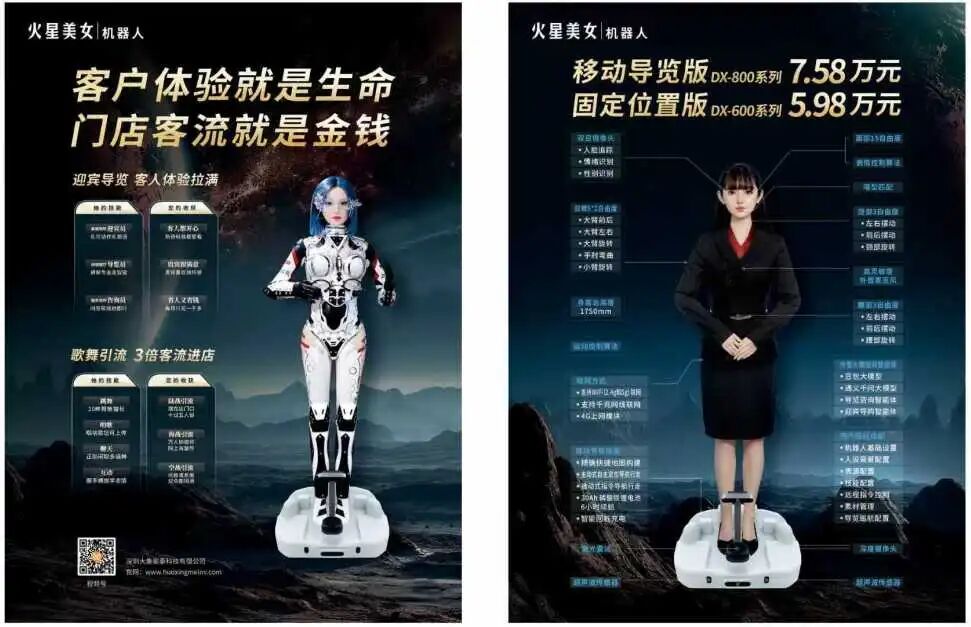 火星美女迎宾导览机器人,和实体店引流机器人,是深圳大象安泰科技有限公司的核心产品,她以顶流颜值、过人灵动、善解人意、步履从容、妙漫歌舞、多语交互、操控自如……而荣膺中国人形一姐,闪耀世界前沿;无论她出现在哪里,都是全场吸睛之王。