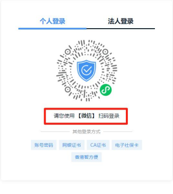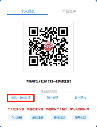 2、选择个人登录,点击【省统一身份认证】→使用【微信扫码登录】