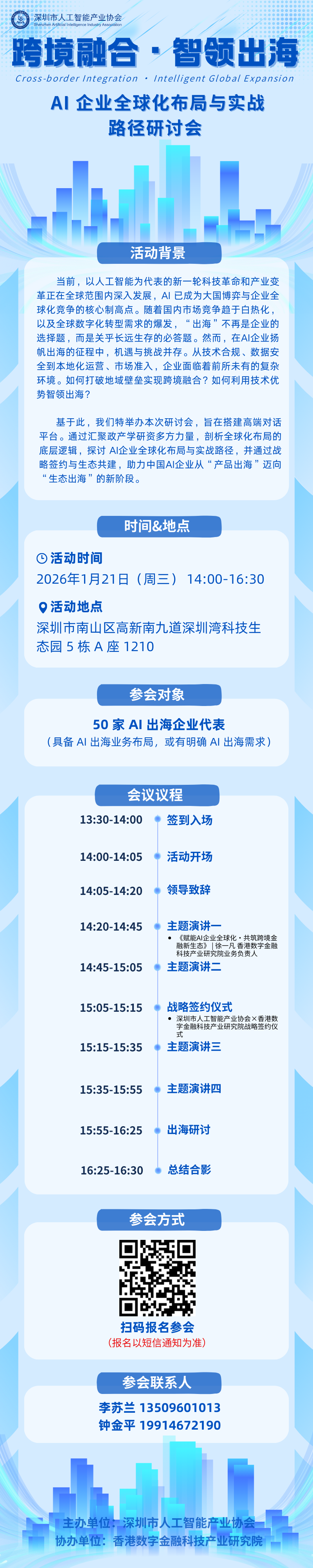 【活动预告】1月21日 | 跨境融合・智领出海 ——AI企业全球化布局与实战路径研讨会