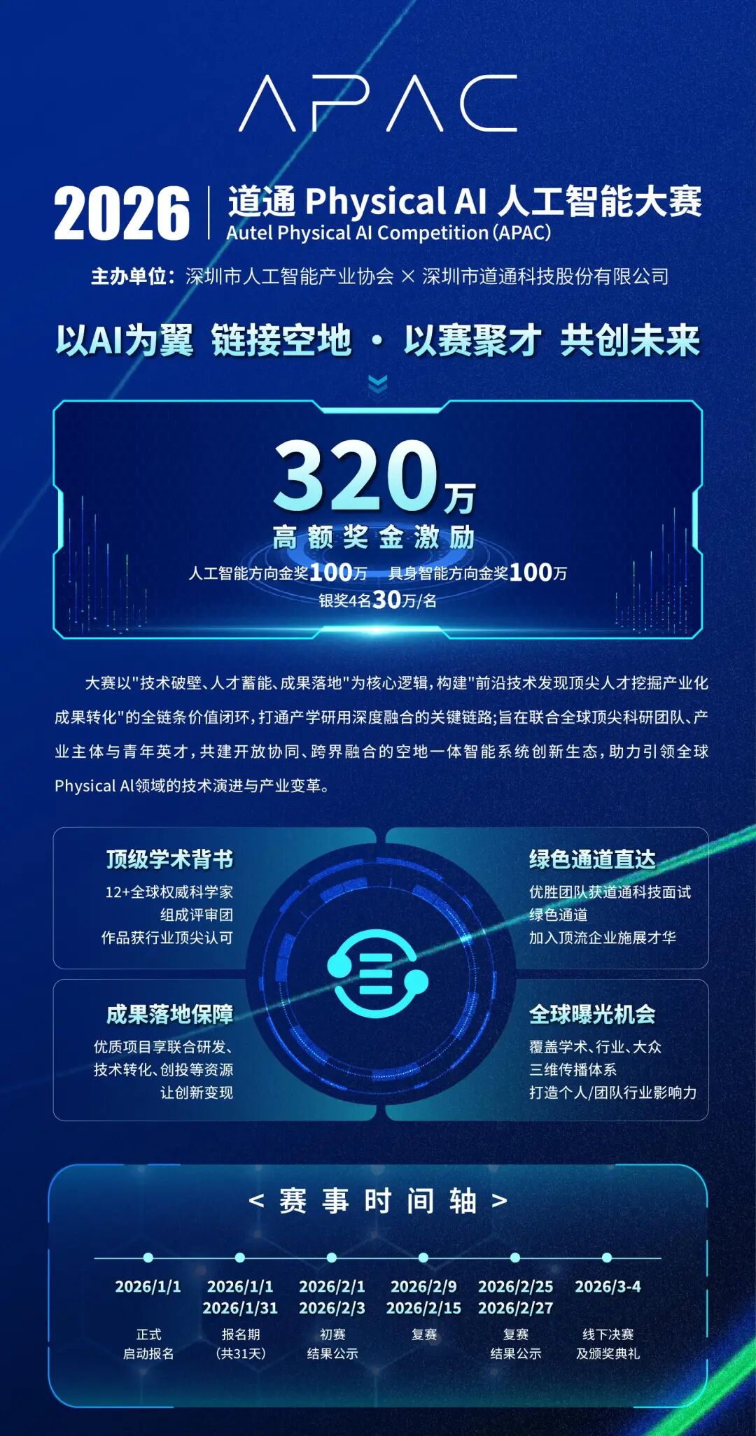 320万奖金池,百万金奖等你来夺!更有机会获得道通科技面试绿色通道、联合研发资源及创投支持,让创新成果直接对接产业落地,实现技术价值最大化。