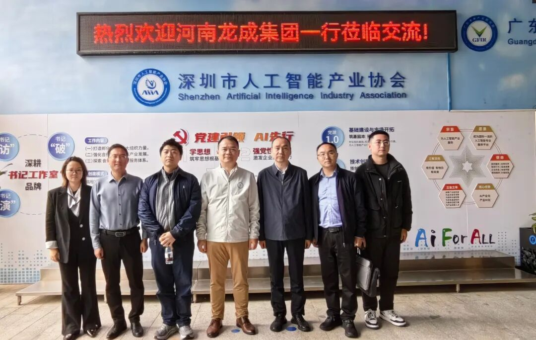 1月29日,河南龙成集团特冶材事业部董事长朱新文带队一行莅临深圳市人工智能产业协会参观交流,围绕智能制造产业融合、技术创新应用及产业链资源对接等核心议题开展深入探讨。深圳市人工智能产业协会轮值会长、会长特助王慧君一行热情接待陪同。