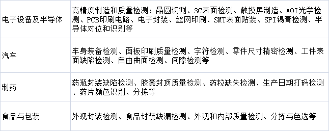 在半导体制造领域,其前、中段过程都需要工业视觉的精密定位与视觉测量,后段制程中晶圆的电器检测、切割、AOI封装、检测等过程都需要大量运用工业视觉技术,工业视觉在半导体制造过程中的速度和精确性优势明显。