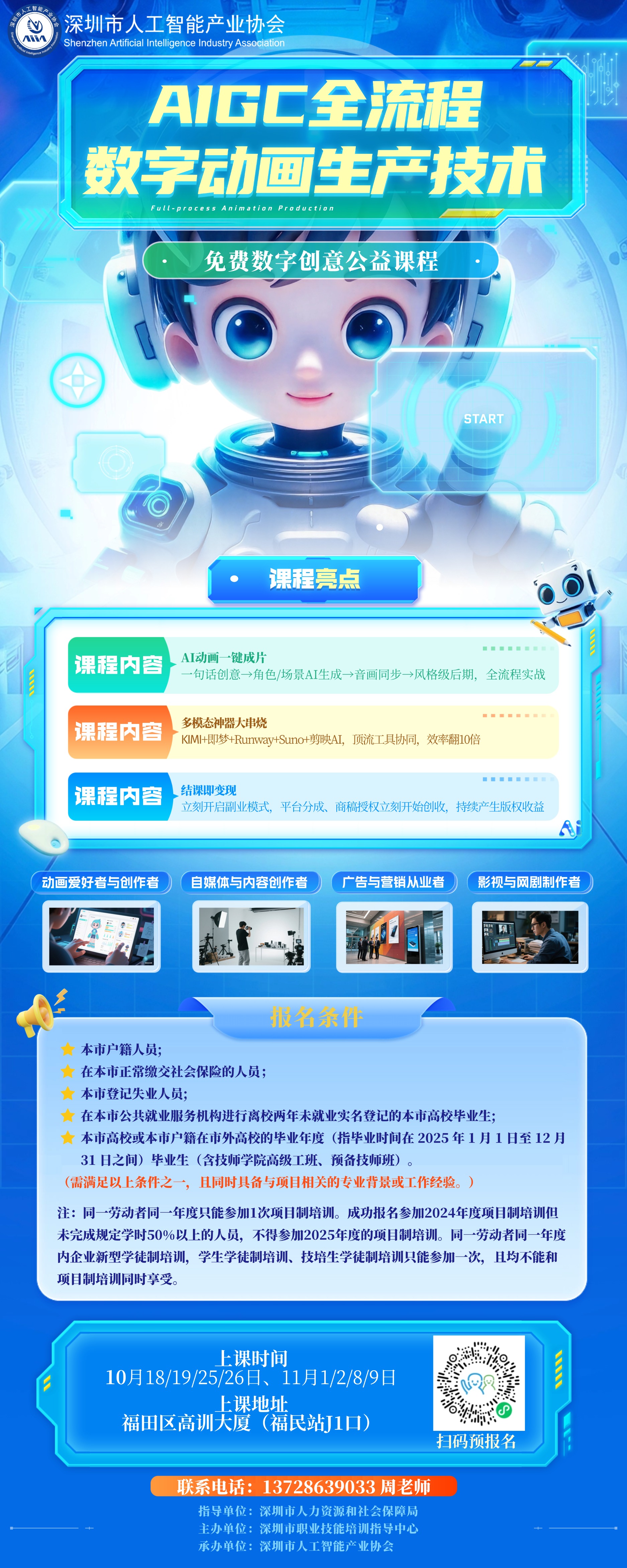AIGC时代,让创意直接成片!现在,「AIGC全流程数字动画生产技术」免费公益课程邀您体验:从一句话的灵感,到角色、场景的AI生成,再到音画同步与后期,全程实战,亲手创造你的动画作品。