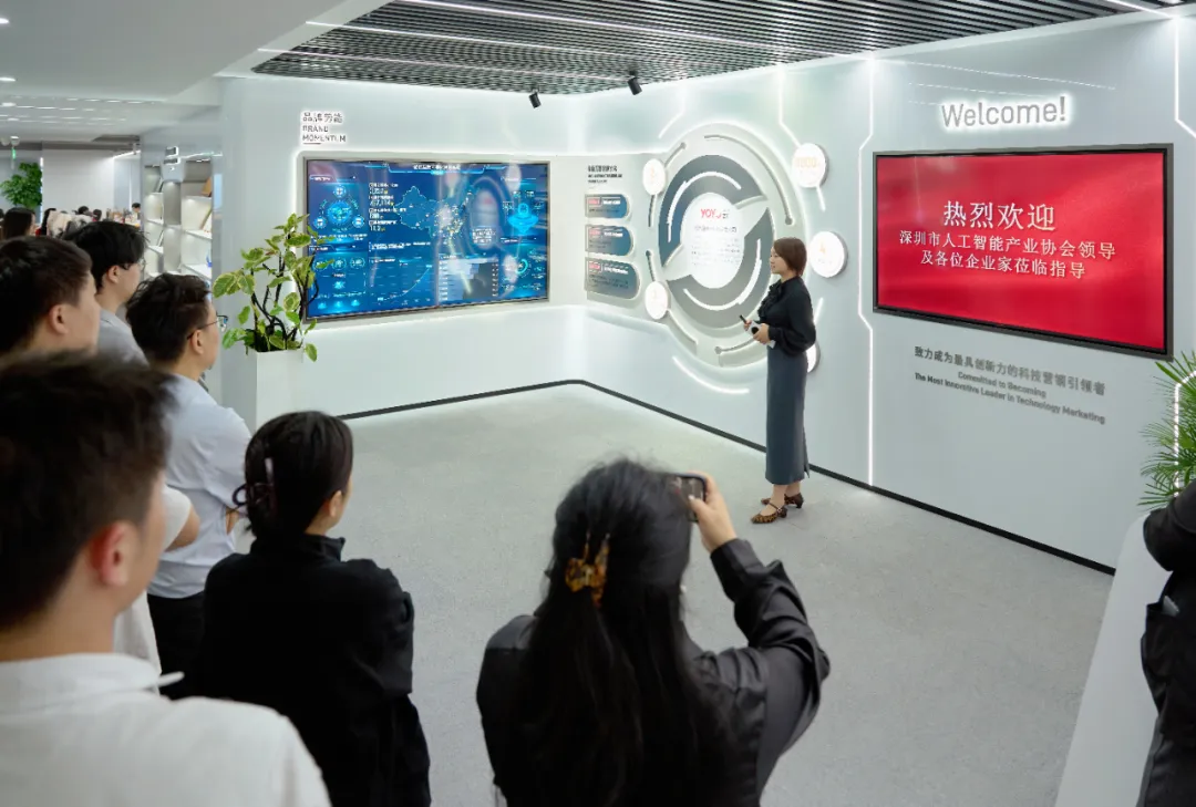 活动期间,协会常务秘书长王健及与会嘉宾参观了公司科技展厅及技术研发中心。通过优优互联公共事务总监陈丽杜的详细讲解以及现场展示,嘉宾们全方位了解了优优互联的发展历程、核心业务布局及当前发展概况,近距离感受了企业在智能营销领域的技术沉淀与创新活力。