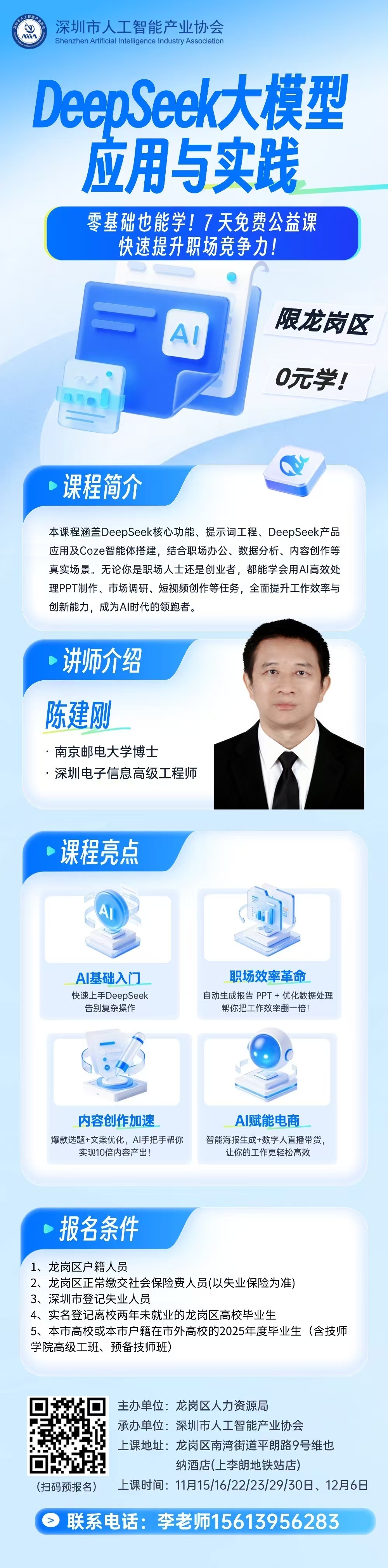 【公益培训】龙岗区专属福利!0元学DeepSeek大模型,7天让你工作效率翻倍!