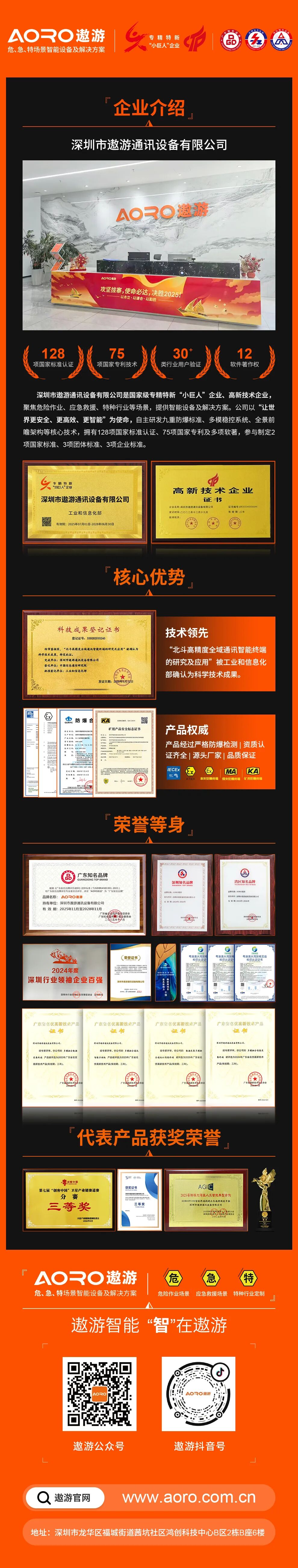 尤为值得一提的是,遨游通讯推出的九重防爆标准、多模稳控系统与全景前瞻架构,已深度集成于其智能终端产品中,并广泛应用于危险作业场景、应急救援场景和特种行业定制之中。公司推出的AORO遨游M6天通卫星电话应急终端,凭借天地一体通讯能力,荣获“直通乌镇”全球互联网大赛三等奖、“创客中国”大赛三等奖等多项权威认可,充分彰显了遨游通讯在公共安全与应急通信领域的硬核担当。