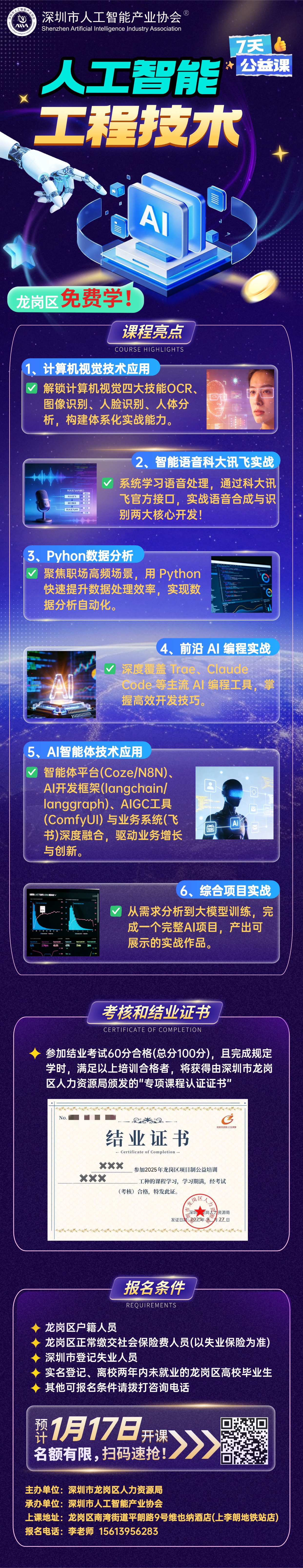 龙岗区公益福利!AI实战课免费学,7天速成高含金量技能!