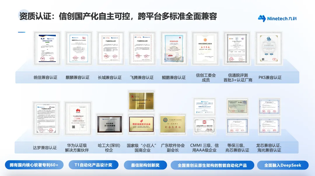 强大的研发投入最终转化为了实实在在的技术成果。如今,九科信息已累计获得覆盖多个关键技术领域的近70项软件著作权及专利,被认定为国家级专精特新“小巨人”企业,在央国企智能自动化赛道的市场占有率排名首位,超大型企业客户复购率超80%。