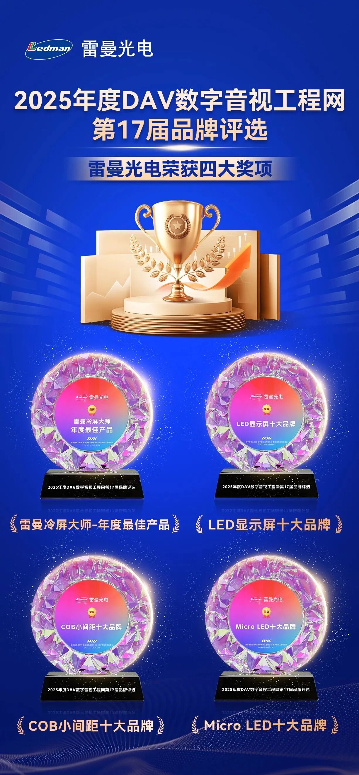 【会员动态】权威认证丨雷曼光电荣膺2025年度音视频行业四大奖项