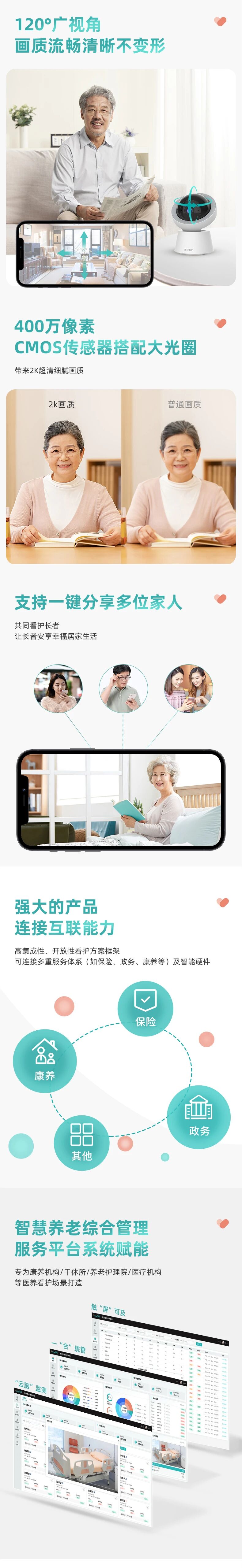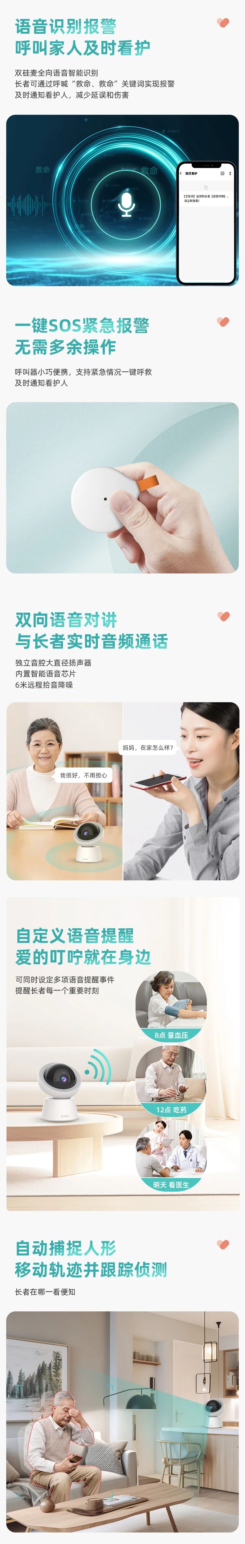 3. 远程陪伴无距离:2K 超高清 + 120° 超广角 + 360° 全景,随时看老人状态,双向音视频对讲,AI 人形跟踪,杜绝 “找不到人” 焦虑。