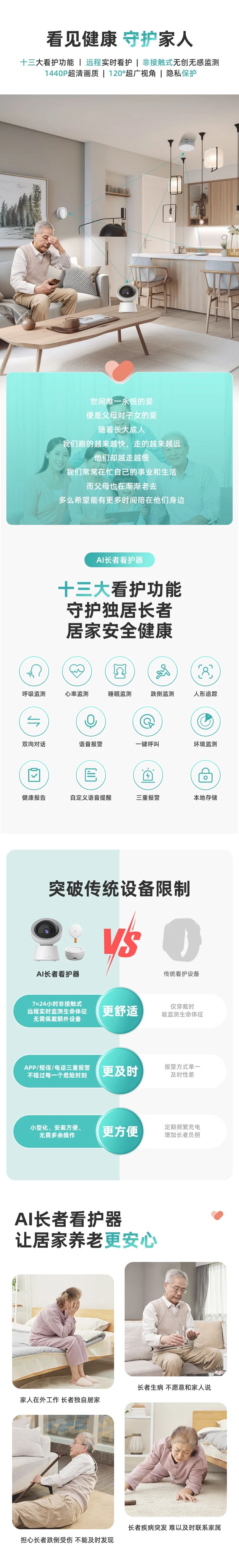 “要是当时有人及时发现就好了”“工作太忙,实在没法 24 小时陪着爸妈”—— 这是无数子女的无奈,也是居家养老最大的痛点。现在,这款能解决所有难题的AI 长者看护器(Pro + 版)横空出世,用科技打破距离限制,让 “隔空守护” 成为现实