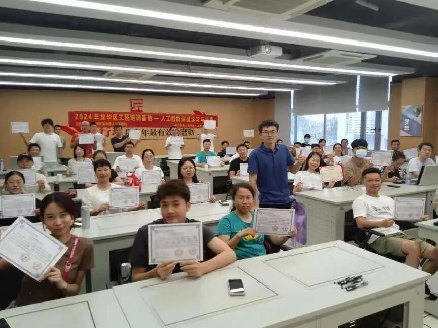 6. 5月12日,由深圳市龙华区人力资源局主办,深圳市人工智能产业协会承办的“公益技能培训项目人工智能深度学习与应用”公益培训在龙华区人才园圆满落下帷幕。