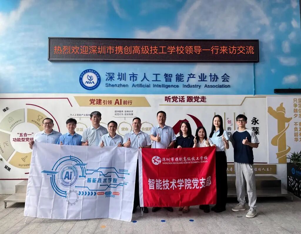 9. 5月15日,深圳市携创高级技工学校智能技术学院党支部书记兼院长廖周一行带队莅临协会。