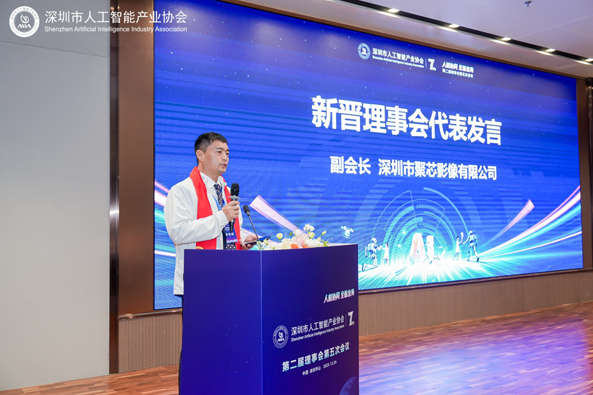 在新晋副会长、理事授牌仪式上,监事长徐明为微克科技、博诚经纬科技、中电投资、聚芯影像、星闪海辰等新晋副会长单位,以及天成盈泰、诺邦泰新材料、意华股份、浙江大沩人工智能等理事单位授牌。聚芯影像总经理吕永辉作为新晋理事代表发言,表示将积极参与协会建设,共创发展新机遇。