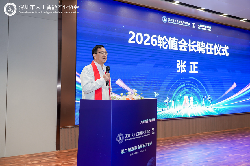 夏佐全会长在致辞中指出,2025年作为协会的“可持续发展年”,在团队建设、业务能力提升、产业服务创新等方面取得了突破性进展。他表示,协会将始终坚持“服务会员、促进产业”的宗旨,进一步搭建政企对接桥梁、夯实产业服务根基、凝聚行业发展合力,为深圳人工智能产业高质量发展筑牢支撑。