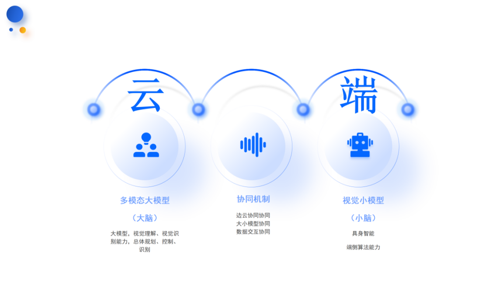 围绕“模型协同+场景落地”实现方法,广电信义充分利用小模型在终端侧的轻量推理能力、大模型在云端的知识调度优势,以及两者在智能设备中高效对接,通过大小模型协同方法,充分发挥各自优势,以实现更高效、更精确的包含感知、理解、推理决策等方面的跨模态智能体系统。