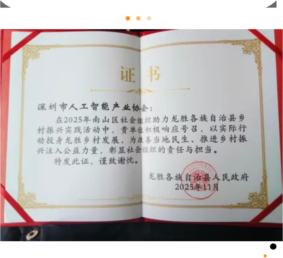 本次活动中,龙胜各族自治县人民政府对参与单位给予高度肯定,专门向深圳市人工智能产业协会颁发荣誉证书,致谢内容如下: