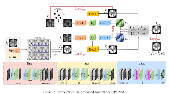 针对这一问题,研究团队基于极大似然融合机制,提出了全新的自监督去噪框架UP²-MAE(Uncertainty-Propelled Physics-MAE Fusion)。该框架设计了两个估计误差相互独立的自监督去噪分支:一是基于物理模型的Noise2Noise分支,通过成像物理知识约束,强化在扩散各向异性区域的降噪效果;二是基于MAE策略的分支,提升在各向同性区域的降噪表现。最终,利用极大似然的不确定性估计,生成不确定性图并自适应引导两分支的融合,实现降噪与细节保留的最佳平衡。