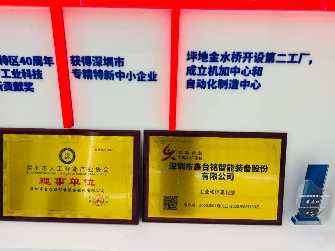 2025年12月5日,深圳市人工智能产业协会执行秘书长王华一行走进理事单位——刚摘得国家专精特新“小巨人”称号的深圳鑫台铭智能装备股份有限公司(简称:鑫台铭),开展常态化走访调研。鑫台铭销售总监刘晓燕全程热情接待,双方围绕技术创新、资源协同、“小巨人”企业发展规划展开深度交流。