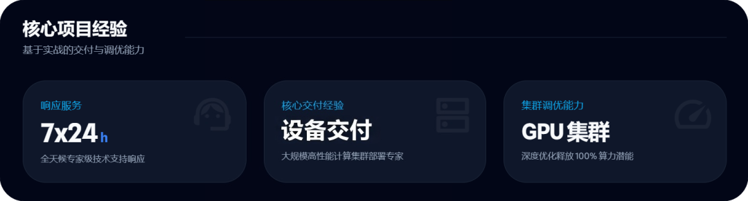 我们提供7×24小时快速响应服务,凭借高标准售后体系、原厂技术支持与全国备件仓布局,大幅提升集群可用性,让客户从容应对高性能、高密度、长周期的 AI 业务场景。