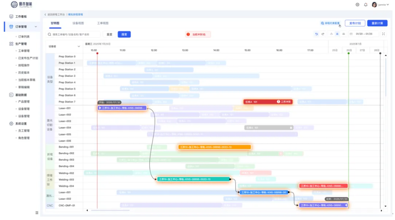 快速排程处理复杂订单与紧急插单,综合考虑设备状态、产能与工时,提升设备利用率与劳动生产率。