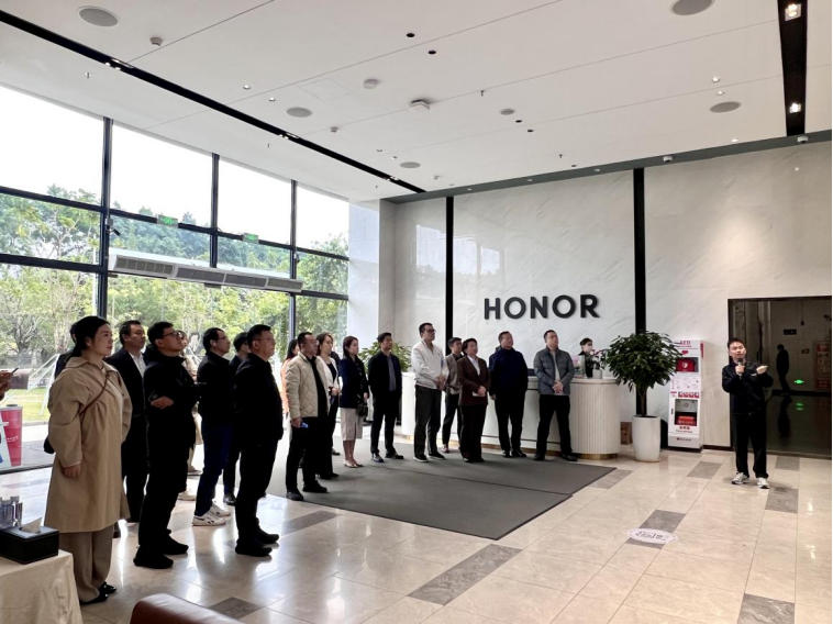 代表团首站走进荣耀智能制造产业园,该产业园以AI技术赋能消费电子研发与智能制造为核心,布局AI生产线、智能研发实验室,企业实地观摩了AI在消费电子研发与智能制造中的落地场景,直观感受消费电子领域的AI数智化转型路径。