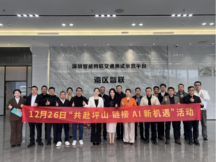 12月26日,“共赴坪山・链接AI新机遇”活动顺利举行,来自全国工商联人工智能委员会、深圳市人工智能产业协会等二十余家企业代表齐聚深圳坪山区,通过实地走访、现场观摩与交流座谈,深入了解坪山区人工智能产业的布局与实践成果。