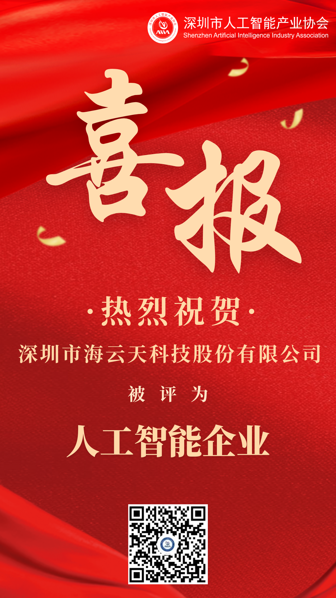 【重要通知】热烈祝贺深圳市海云天科技股份有限公司通过人工智能企业认证
