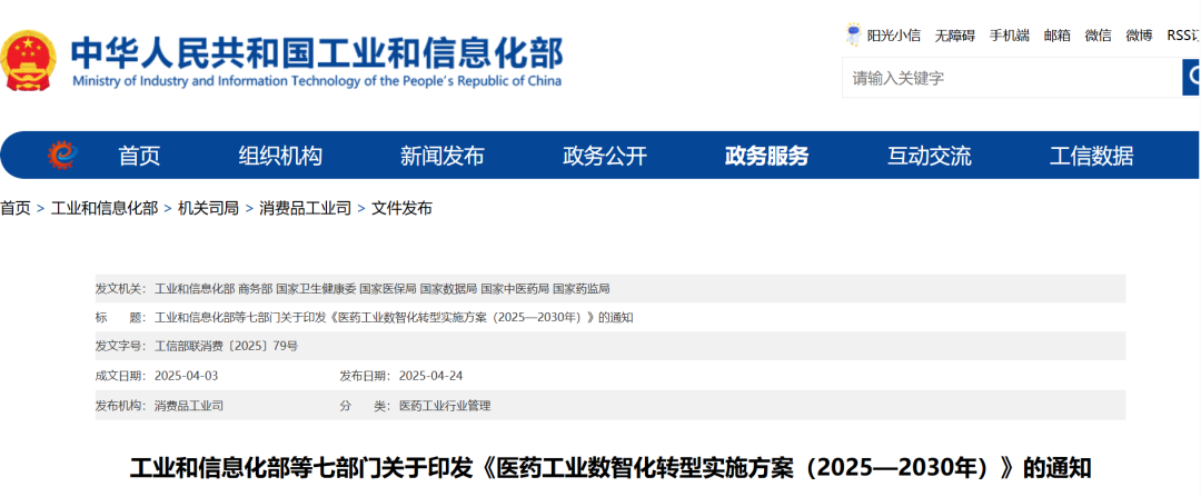 现将《医药工业数智化转型实施方案(2025—2030年)》印发给你们,请结合实际,抓好贯彻落实。